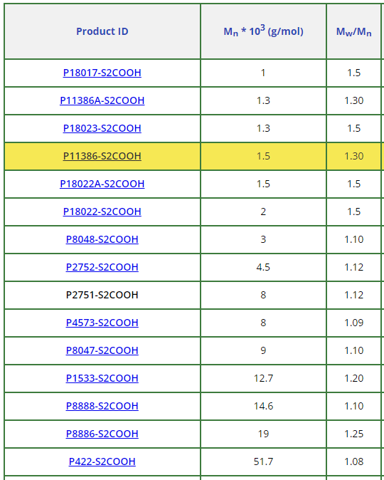 聚(苯乙烯), α,ω-bis(carboxy)-terminated部分產(chǎn)品: