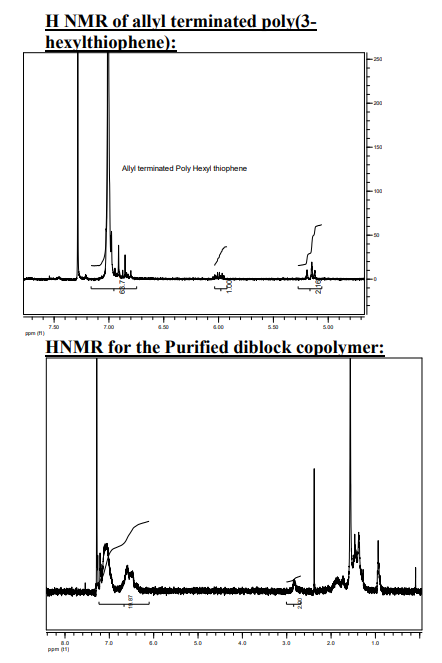 分子量和多分散指數(shù)(PDI)通過尺寸排除獲得THF或氯仿中的色譜(SEC)。對Varian液體進行SEC分析配備折射和紫外線的色譜儀光散射探測器。來自的三個SEC列Supelco(G6000-4000-2000 HXL)與Viscotek公司的三重探測器分子重量是根據(jù)聚苯乙烯計算的標(biāo)準(zhǔn)。NMR光譜記錄在氘代氯仿測定官能度和共聚物的組成。