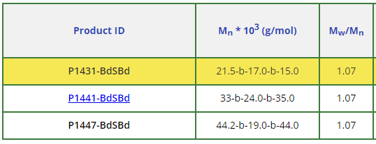 聚(1,4-丁二烯)-b-聚(苯乙烯)-b-聚(1,4-丁二烯)產(chǎn)品: