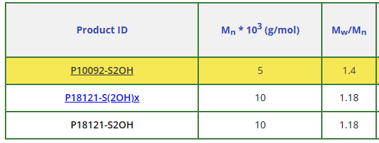 | 聚(苯乙烯), with dihydroxy group in center of 聚mer chain | PMS-P10092-S2OH-500mg | 查看 |