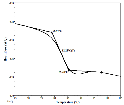 熱分析:對樣品進行了熱分析在TA Q100差分掃描上輸出熱量計,加熱速率為10℃/min熱流斜率變化的中點考慮了第二次加熱掃描的繪圖作為玻璃化轉(zhuǎn)變溫度(Tg)。