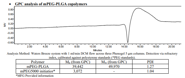 mPEG-PLGA / 甲氧基聚(乙二醇)-b-聚(丙交酯-共-乙交酯),(Mw ~3,000:36,000 Da)LA:GA 50:50基本參數(shù):
