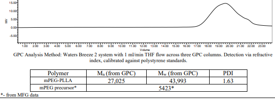 中文名稱:mPEG-PLLA / 甲氧基聚(乙二醇)-b-聚(L-丙交酯),(Mw ~5,000:20,000 Da)