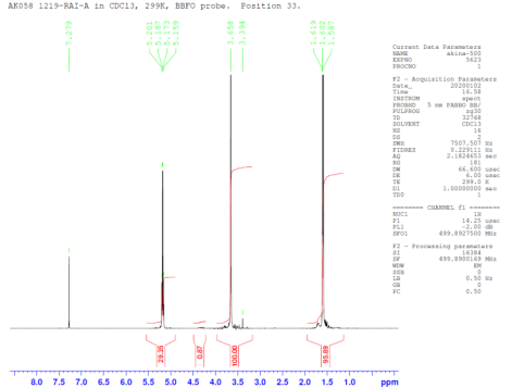 共聚物在CDCl3(Bruker≥300MHz,PINMRF)核磁共振:EG/LA-GA=100/117(錳EG/LA:GA 4405/8453 Da) |