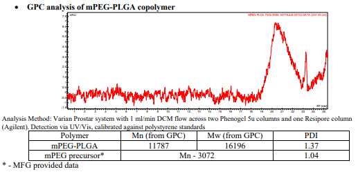 mPEG-PLGA / 甲氧基聚(乙二醇)-b-聚(丙交酯-b-乙交酯),(Mw ~3,000:9,000 Da)LA:GA 75:25基本參數(shù):