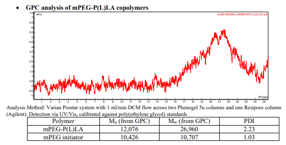 中文名稱:mPEG-PLLA / 甲氧基聚(乙二醇)-b-聚(L-丙交酯),(Mw ~10,000:10,000 Da)