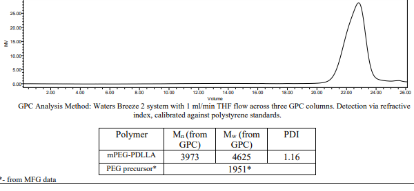 中文名稱:mPEG-PDLLA / 甲氧基聚(乙二醇)-b-聚(D,L-丙交酯),(Mw ~2,000:1,300 Da)