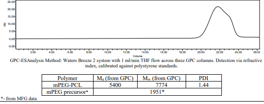 中文名稱:mPEG-PCL / 甲氧基聚(乙二醇)-b-聚(己內(nèi)酯),(Mw ~2,000:2,000 Da)