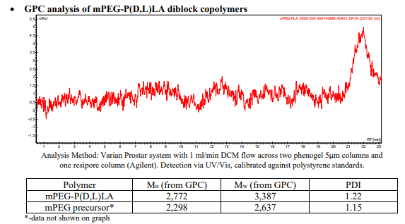 mPEG-PDLLA / 甲氧基聚(乙二醇)-b-聚(D,L-丙交酯),(Mw ~2,000:500 Da)基本參數(shù):