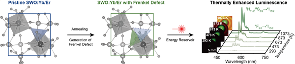 圖1. 基于鎢酸鈧結(jié)構(gòu)中的Frenkel缺陷實現(xiàn)稀土熒光熱增強。