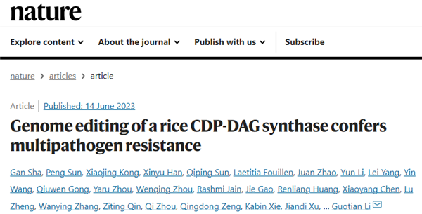 華中農(nóng)業(yè)大學(xué)Nature發(fā)文:創(chuàng)制新型作物廣譜抗病基因