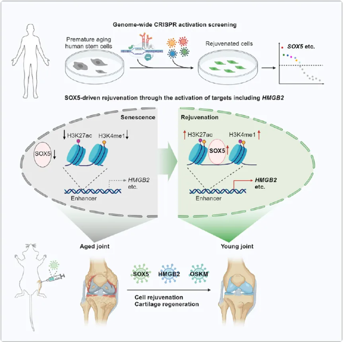 利用衰老細(xì)胞的全基因組CRISPR激活篩選揭示了SOX5作為年輕化的驅(qū)動(dòng)因素和治療靶點(diǎn)。