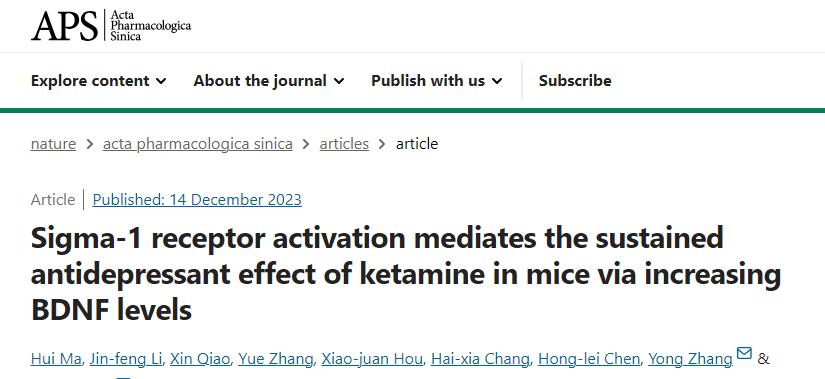 研究發(fā)現(xiàn)Sigma-1受體激活通過(guò)增加BDNF水平介導(dǎo)氯胺酮在小鼠體內(nèi)的持續(xù)抗抑郁作用,這些結(jié)果揭示了S1R在氯胺酮持續(xù)抗抑郁作用中的關(guān)鍵功能,并表明氯胺酮和S1R激動(dòng)劑的組合可能對(duì)抑郁癥患者更有益。