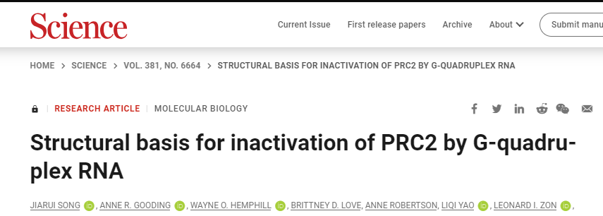 這項研究的發(fā)現揭示了G-四鏈體RNA作為一種調控PRC2活性的新機制,并提供了PRC2失活的結構基礎。這對于進一步理解PRC2功能以及相關疾病的發(fā)生機制具有重要意義。此外,這項研究還為開發(fā)針對PRC2的新型治療策略提供了理論基礎,為相關疾病的治療和藥物研發(fā)帶來了新的可能性。
