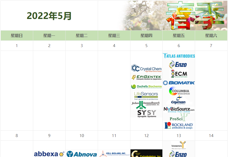 2022年5月份艾美捷科技代理品牌截單時間出爐啦~,廣大艾豆們分享該頁面,以及及時獲取5月份艾美捷代理各品牌的截單時間,合理安排試劑采購時間與實驗時間。