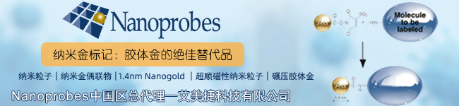 Nanoprobes公司成立于1990年,專門生產(chǎn)免疫金標(biāo)記和免疫測定試驗產(chǎn)品。主要為廣大科研機(jī)構(gòu)提供用于檢測生物分子的最靈敏的試劑和技術(shù)。Nanoprobes公司獨特的金標(biāo)技術(shù)使用化學(xué)交聯(lián)的金屬簇和納米顆粒作為標(biāo)簽。與膠體金顆粒靜電吸附在抗體和蛋白質(zhì)上的傳統(tǒng)免疫金探針不同,Nanoprobes公司的金標(biāo)是與生物分子在特定位點交聯(lián)的不帶電荷的分子,故其探針具有膠體金不具備的范圍和靈活性。Nanoprobes標(biāo)簽可以附著在任何帶有反應(yīng)基團(tuán)的分子上,比如蛋白質(zhì)、多肽、寡核苷酸、小分子和脂類等,以檢測和定位這些分子。其金標(biāo)也可以和其他標(biāo)簽結(jié)合,一起使用。Nanoprobes獨特的熒光納米金探針在一個探針中結(jié)合了納米金(Nanogold)和熒光素,用于熒光和電鏡兩種技術(shù)共同進(jìn)行樣品成像。