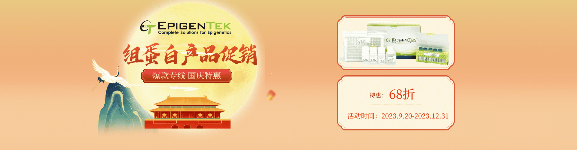 中秋國(guó)慶,共享喜慶!本次促銷活動(dòng)產(chǎn)品涵蓋組蛋白修飾試劑盒以及相關(guān)組蛋白抗體等~